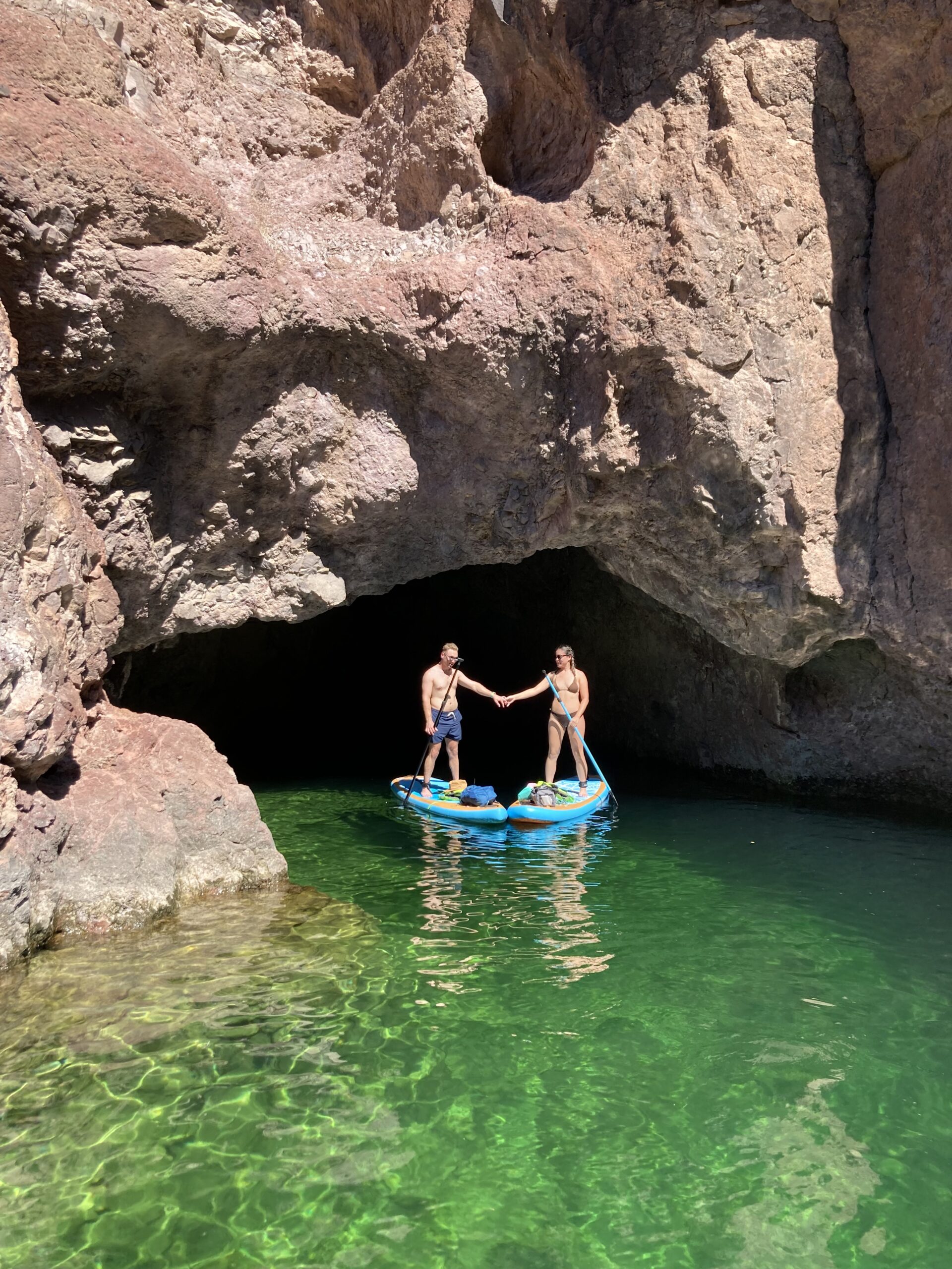 The Emerald Cave paddle board tour is more than just a trip—it’s an immersive experience where you can truly connect with nature. The peaceful, glassy waters of the Colorado River, the towering canyon walls, and the stunning green glow of Emerald Cave make this an unforgettable adventure. Whether you’re an experienced paddler or brand new to the sport, our private tours provide a stress-free, enjoyable way to explore one of the most beautiful hidden gems near Las Vegas.